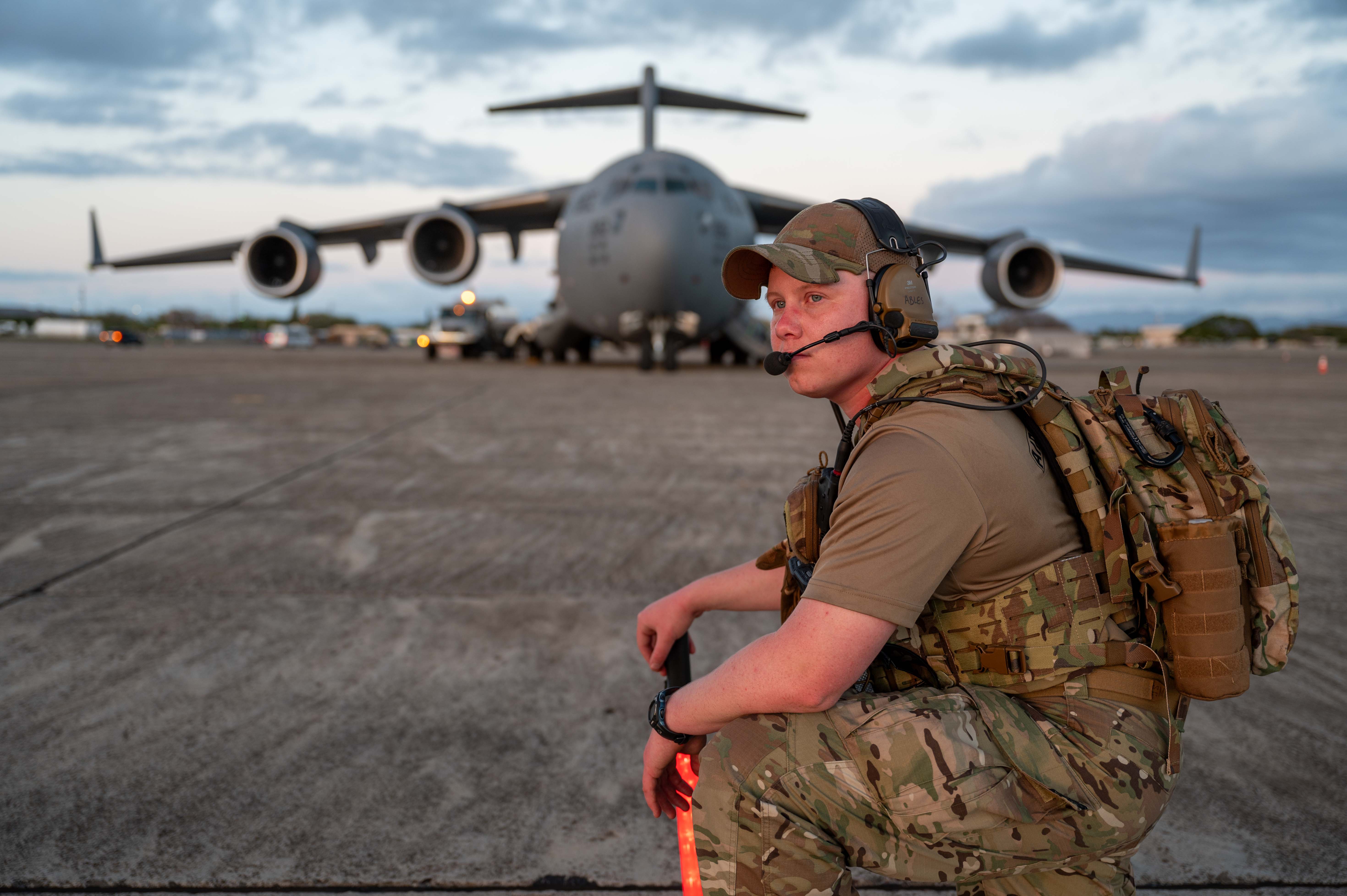 U.S. Air Force Master Sgt. Howard Passley, 104th Medical Group health service management craftsman, left, and Master Sgt. Jeremiah Johnson, Operation Healthy Ellwood first sergeant, pose for a photo in front of the Western Pennsylvania hills during Distinguished Visitor Day, Ellwood City, Pennsylvania, July 31, 2025. Operation Healthy Ellwood was a two-week Innovative Readiness Training mission that provided no-cost medical, dental, vision, behavior health and veterinary services to thousands of people. (U.S. Air Force photo by Senior Airman Alexis Morris)