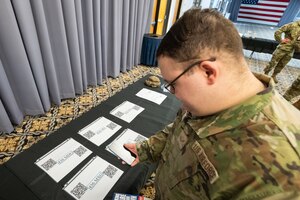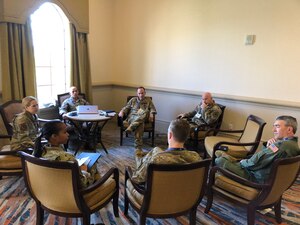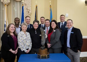 Team Dover, Central Delaware Chamber of Commerce’s Military Affairs Committee (CDCC MAC) and Abilene Chamber of Commerce leadership pose with the Abilene trophy in Dover, Delaware, March 10, 2022. The CDCC MAC was awarded the Abilene Trophy as a way to feature the outstanding support they provide