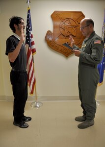 As part of the Air Force Reserve Command's recruiting program, the 512th Airlift Wing recruiting team joined the ranks of only two other Northern Squadron recruiting flights to make their fiscal 2013 goal and attain 300 trainees Wednesday when Andrew Hungerford, 21, of Camden, Del., took the oath of